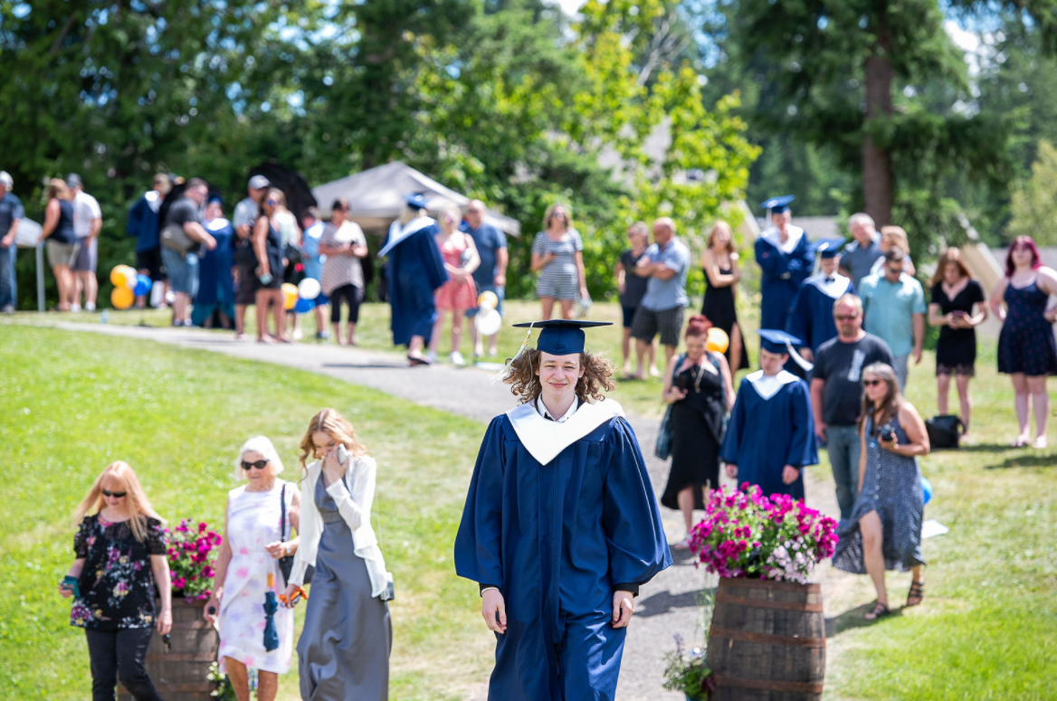 Salmon Arm Secondary hosts an annual outdoor Graduation Ceremony on our school’s property, overlooking beautiful Shuswap Lake. Graduates will be given an alphabetically determined scheduled time for their ceremony, between 10am and 4pm. Graduates then meet at McGuire Lake for photographs and end the evening with a Dry Grad Celebration organized by parents.